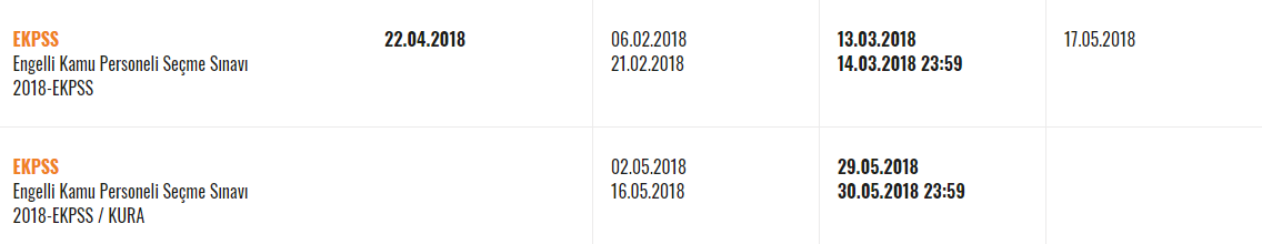 EKPSS 2018 yılında 22 Nisan tarihinde gerçekleştirilecek. Sınava girecek olan engelli adayların ise başvurularını en geç 06 Şubat ve 21 Şubat 2018 tarihleri arasında gerçekleştirmeleri bekleniyor. Yapılacak olan sınavın sonuçları ise 17 Mayıs 2018 tarihinde açıklanması bekleniyor.