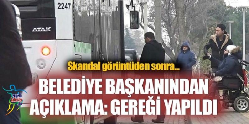 Başkan yalnızca bununla kalmayarak yaşanan olayla ilgili sosyal medya hesabında tepkisini dile getirdi. Yaptığı açıklamada şu ifadeleri kullandı. “Bugün sosyal medyada yankı bulan, asla tasvip etmediğim yeşil otobüsün engelli hanımefendiyi duraktan almaması olayı cuma gerçekleşmiş, kamuoyuna bugün yansımıştır. Hemşerilerimiz bilsin ki gereken yapılmış, asla yanlış yapana müsamaha gösterilmeyecektir” dedi.